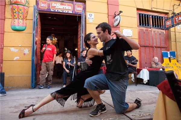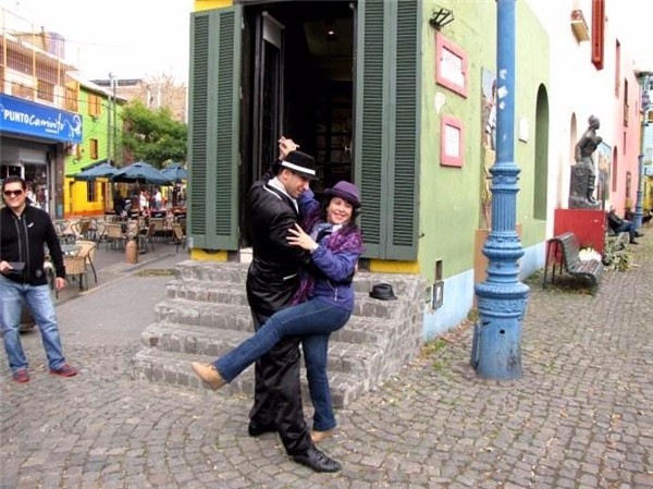 In the Boca neighborhood of Buenos Aires, you can always dance a graceful tango with your partner, no matter whether you are a professional dancer or not — —