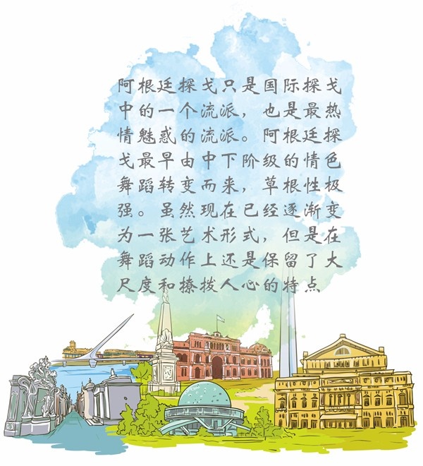 Tango is the national dance of Argentina. For Argentines, dancing tango is as simple as eating a meal, which is basically two glasses of red wine, and two people can dance together with each other by virtue of the tacit understanding — —