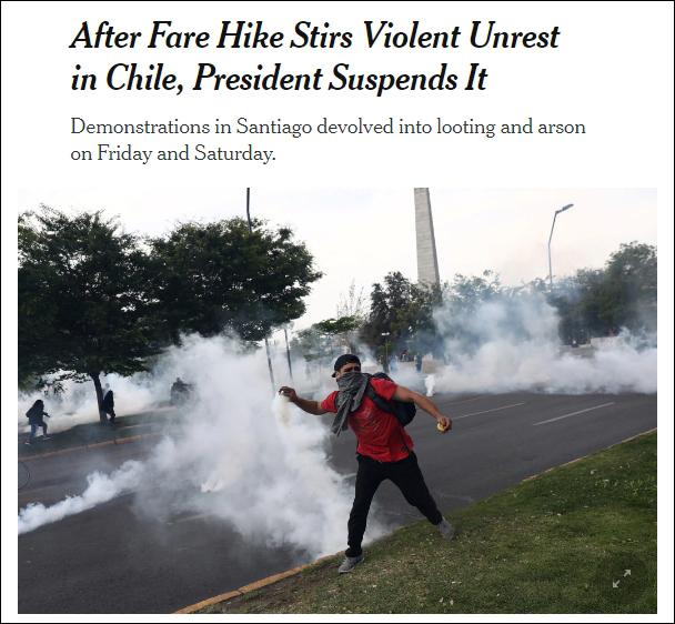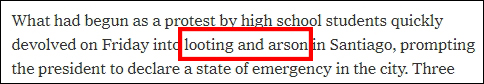 However, street demonstrators in Chile who have similar behaviors have become "robbery and arson" and "riots" in the mouth of the two media. "Violent demonstrations swept through Quito (the capital of Ecuador) … The demonstrators took military members hostage."